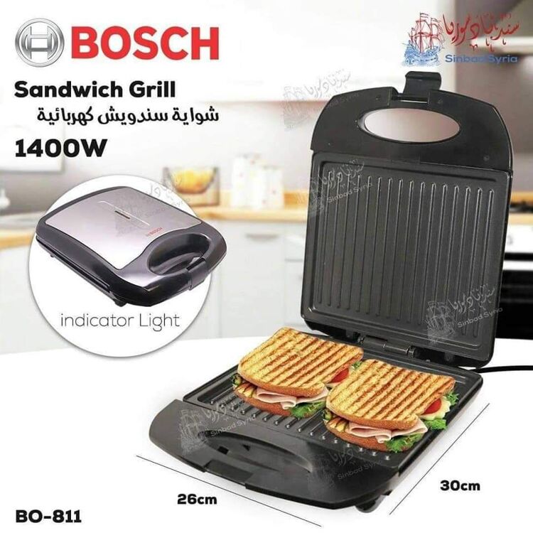 سخانة سندويش ماركة بوش BOSCH BO-811 🤗 شواية او سخانة سندويش 🔥🔥 بقوة 1400 واط لشوي وتسخين صحي 🍡🍢 للحوم والسمك او الخبز او الخضراوات🍗🍖🐟🐟🍅🍅 يتم طهي كل عنصر من الطعام في درجة حرارة مثالية من كلا الجانبين 😍😍😍😍 طبخ سريع وصحي كالمحترفين 🍞🍘 سهولة تامة بالتنظيف🚀🚀 😍 وكل هاد بسعر مميز😍 الأبعاد 26*30 سم